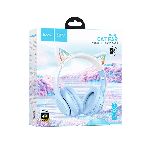 HOCO BLUETOOTH HEADPHONES W42 CAT EARS CRYSTAL BLUE