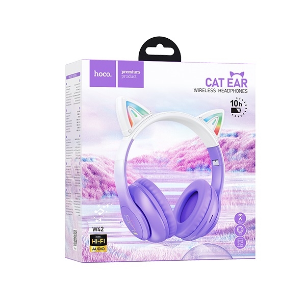 HOCO BLUETOOTH HEADPHONES W42 CAT EARS PURPLE GRAPE