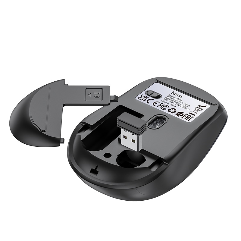 HOCO GM28 wireless optical mouse, equipped with 4 buttons and a scroll wheel. It features a sensor with variable sensitivity of 800-1200-1600 dpi. Designed for home and office use. A comfortable wireless mouse that allows dexterity without cable restrictions.