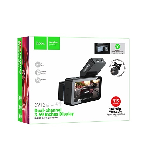 Home GADGETS DASH CAMERA HOCO DV12 DRIVING RECORDER 2K DISPLAY GPS + REAR CAMERA